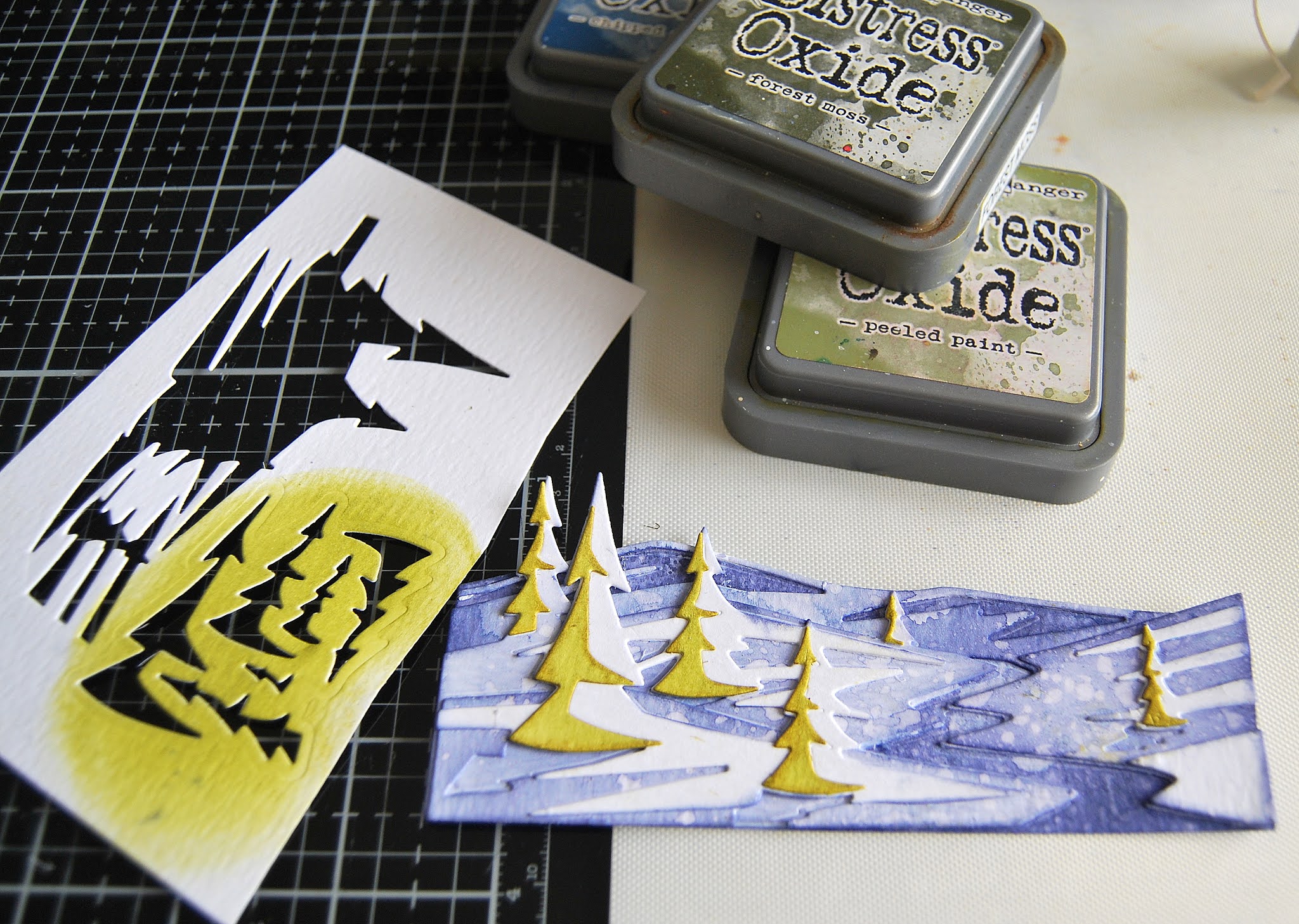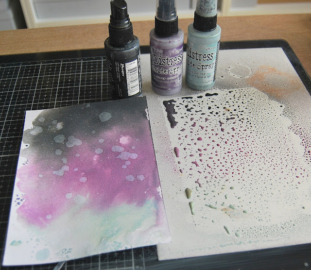 I coloured 2 of the previously stamped images with Distress Watercolor Pencils (colours linked below) and a Detailer Waterbrush.