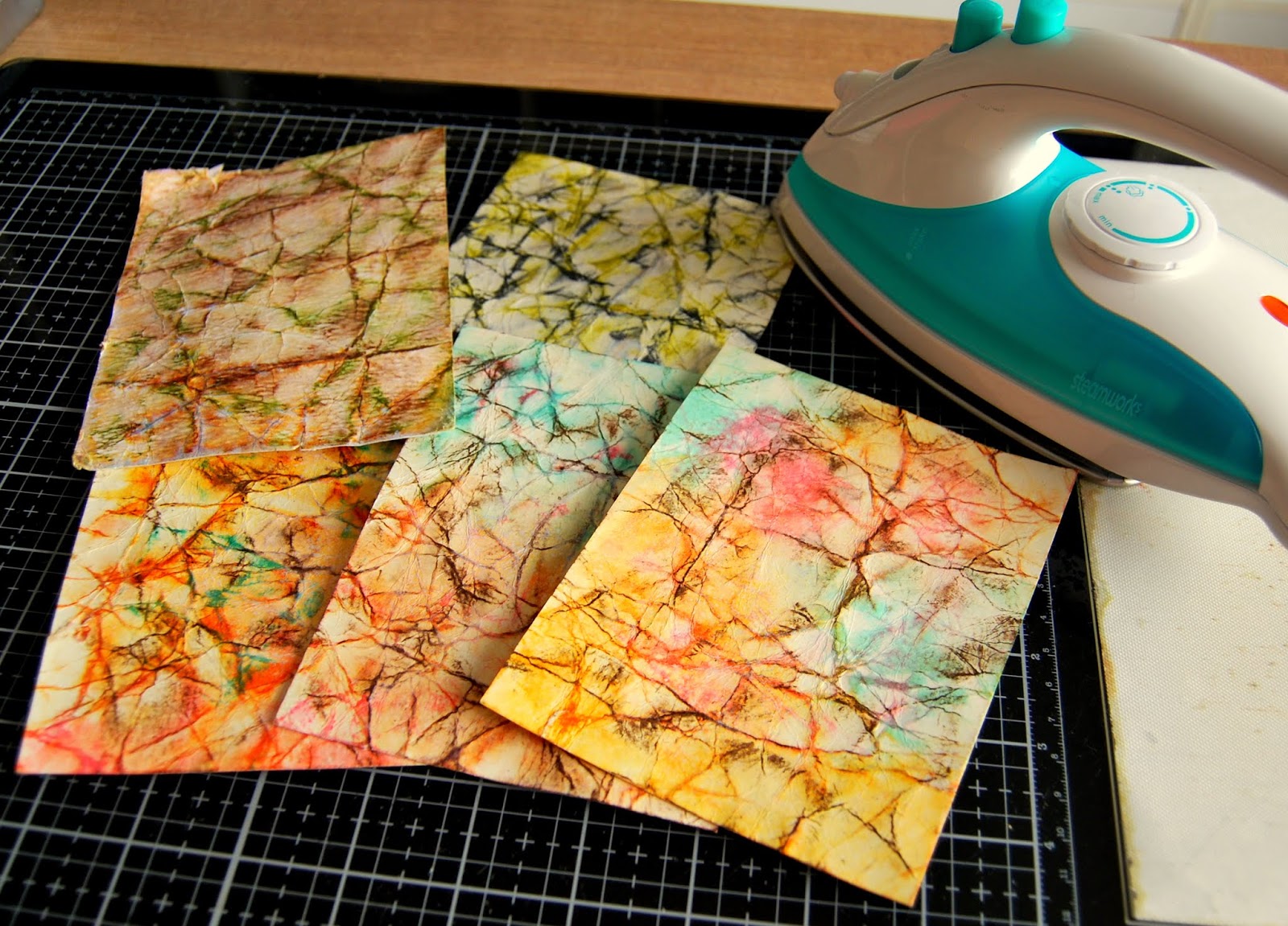 Once I started I couldn't stop, trying out different colour combinations and going wild, creating double and triple wrinkles with darker colours and smoothing them out at each stage with the hot iron. Sadly, I don't think the hot iron technique would smooth out the wrinkles this wrinkly old crafter has accumulated over the years and I'm not about to put it to the test.