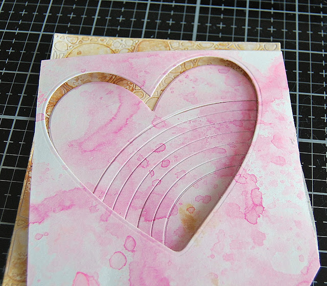 Hi my friends, I'm sharing a card which could be for Valentine's Day or just to say how happy I am to welcome Kitsch Flamingo to the Distress Family using Tim Holtz/Sizzix Bubbling and Cafe Colorize Thinlits from the 2021 Chapter 1 release, along with Falling Hearts and Alphanumeric Label Thinlits from a previous release and Simon Says Stamp Rainbow Heart.