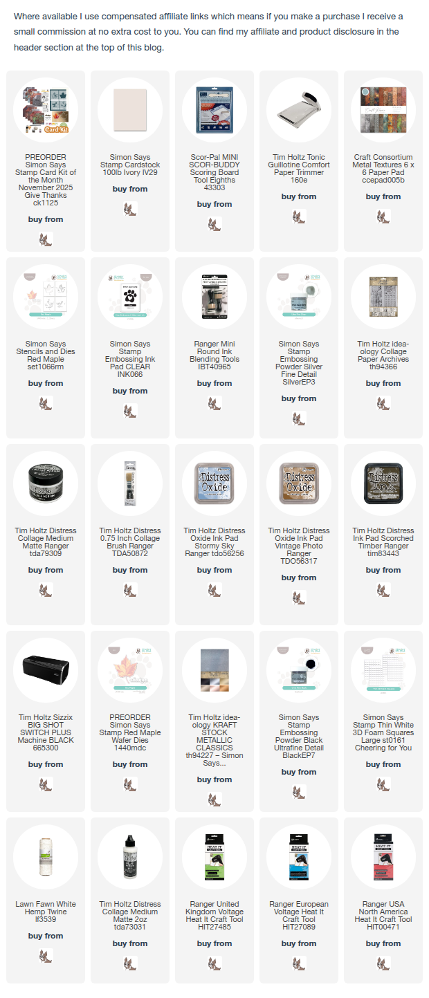 Hello my friends, I'm back to share another card using the Craft Consortium Metal Texture patterned paper and Simon Says Stamp Red Maple Layering Stencils and co-ordinating dies from the Give Thanks November 2025 card kit. You can check out all the products in the kit, purchase individual items from the kit and sign up to subscribe to the great value for money for kits, if you don't already, HERE.