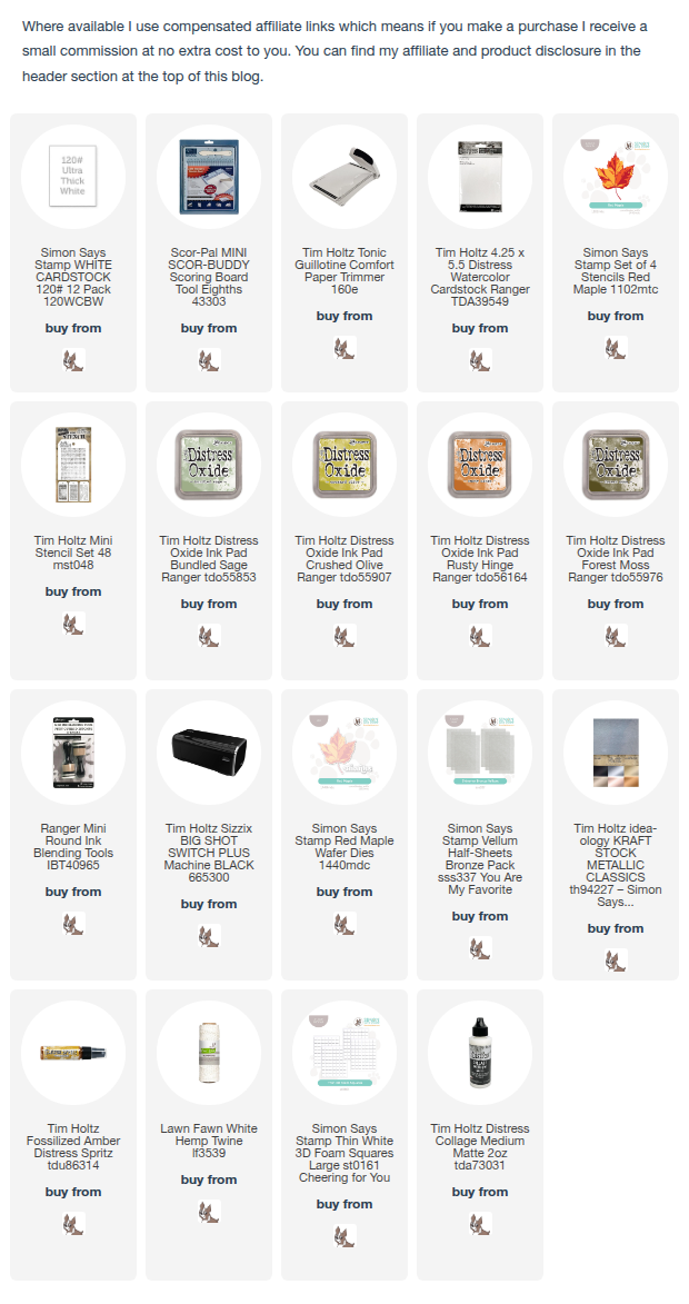 I created a card with an Autumnal feel using Simon Says Stamp Red Maple set of layering stencils and Red Maple Wafer dies from the Give Thanks November Card Kit along with Tim Holtz/Stampers Anonymous Mini Layering Stencils from Set 48.