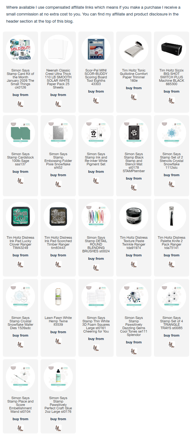 Hello my friends, I hope you all had a wonderful Christmas with your family and friends. As 2025 comes to a close and we get ready to welcome 2026, I'm sharing a card made with products from Simon Says Stamp The Small Things January 2026 Card Kit. No surprise that this fabulous kit has already sold out but you can, if you wish, purchase individual items from the kit HERE or subscribe to future kits HERE.