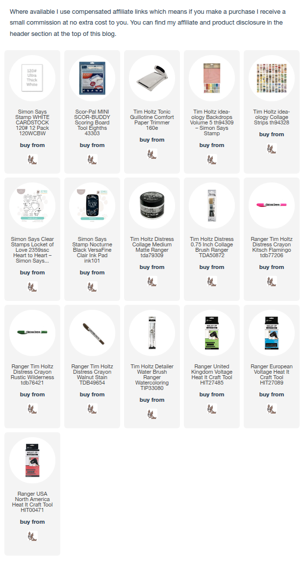 I created a vintage style Valentine's Day card using the Locket Of Love stamp set from the release, Tim Holtz/Idea-ology Backdrops 5 paper and Collage Strips and Distress Crayons to add a touch of grunge.I trimmed the Tim Holtz/Idea-ology Backdrops 5 floral paper to 4" x 5.1/4", placed in my stamping tool and stamped the locket image, inked with Versafine Clair Nocturne ink.I fixed two strips trimmed from Tim Holtz/Idea-ology Collage Strips to the panel with Distress Collage Medium. I replaced the panel into my stamping tool in the same place as before and stamped the Locket Of Love image again, along with the string of pearls and sentiment.I dried the images with my heat tool and applied a layer of Distress Collage Medium over the panel using a Distress Collage Brush. I scribbled Kitsch Flamingo, Rustic Wilderness and Walnut Stain Distress Crayons on my media mat and used a Distress Detailer Waterbrush to colour the flowers and leaves. I scribbled the Walnut Stain Distress Crayon around the edges of the panel and the Collage Strips and rubbed with my finger to create shadows.To finish I dragged Kitsch Flamingo Distress Oxide ink pad around the edges of an A2 white card blank and fixed the panel in place.