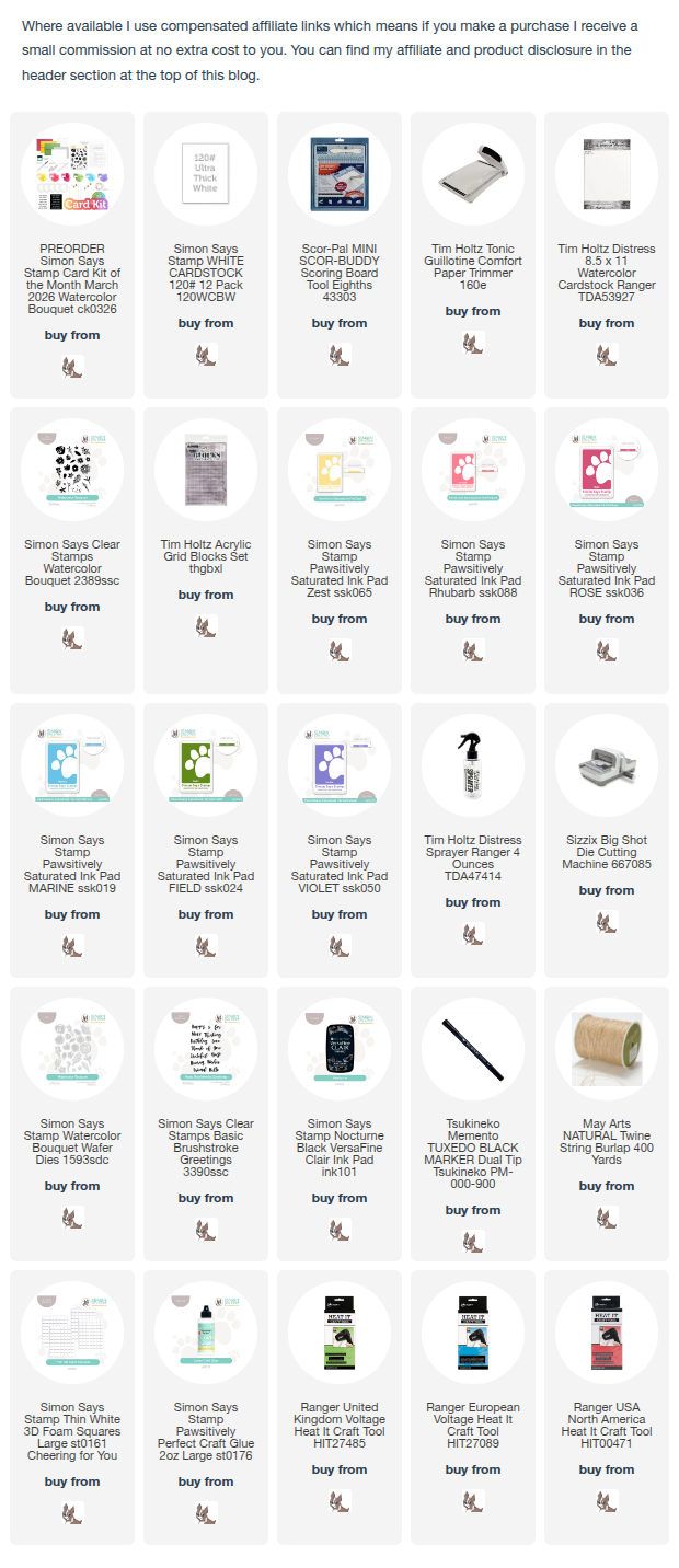 Hello my friends, I was so excited when Simon Says Stamp March 2026 card kit - Watercolor Bouquet arrived in the cubbyhole. Oh boy this kit is jammed pack with lots of fabulous products to inspire your creativity and kick start your Spring themed card making. You can check out what is included in the kit, subscribe if you don't already or purchase individual items from the kit, if you wish, HERE.